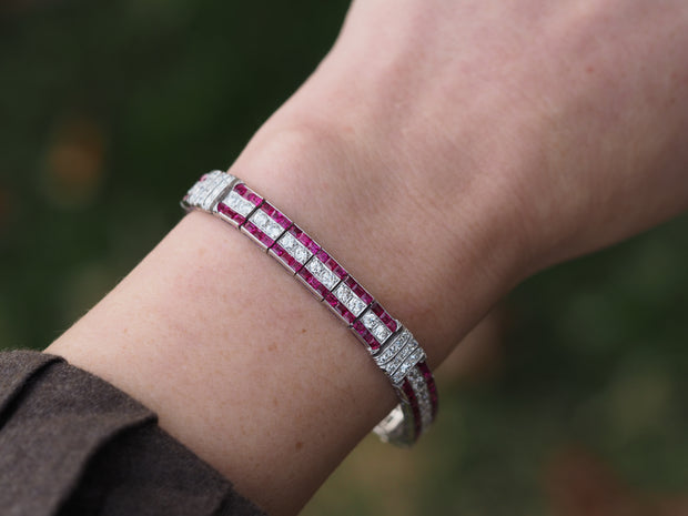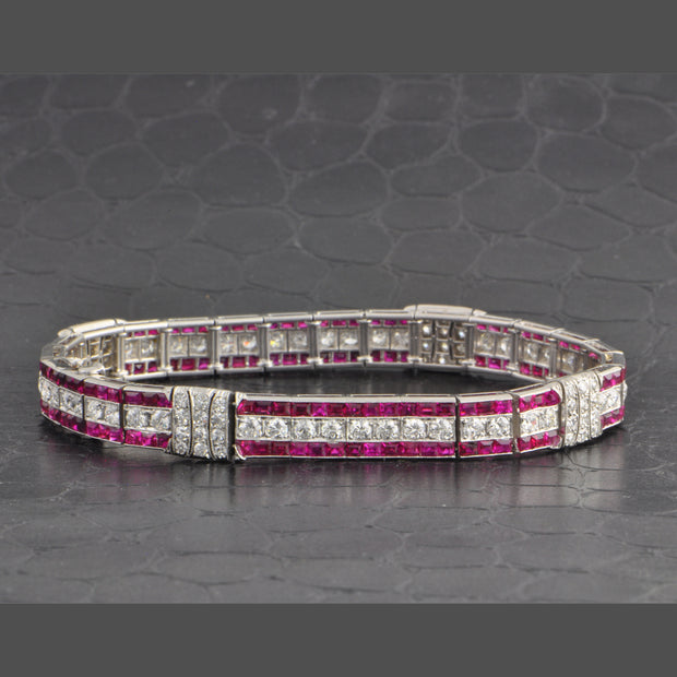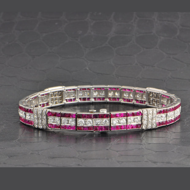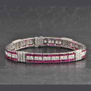 Antique Tiffany & Co. Art Deco No-Heat Burmese Ruby and Old European Cut Diamond Bracelet in Platinum
