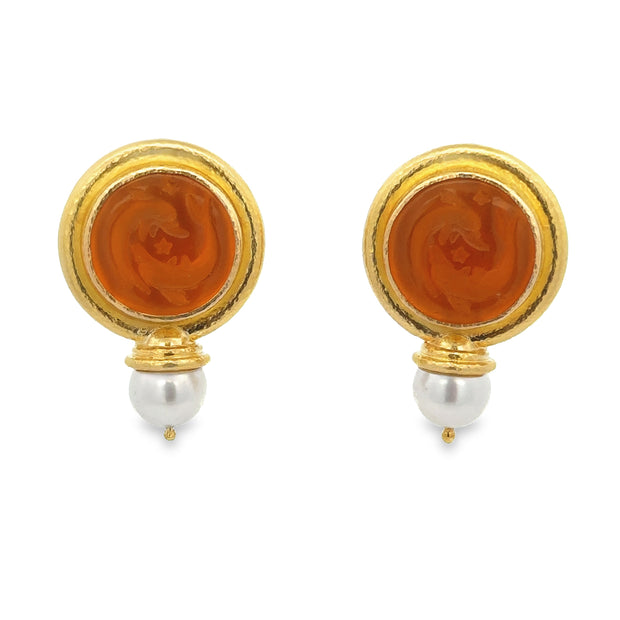 Estate Elizabeth Locke Venetian Glass Carved Intaglio and Pearl Earrings