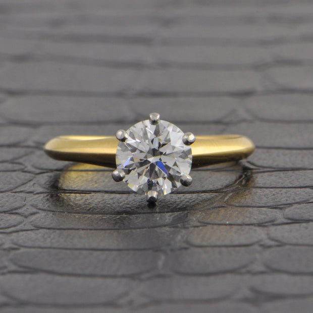 Tiffany & Co. .92 ct. Round Brilliant Cut Diamond Engagement Ring in Yellow Gold