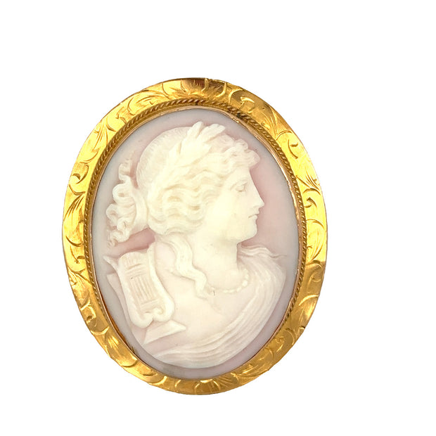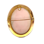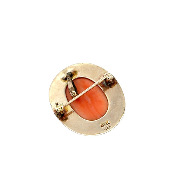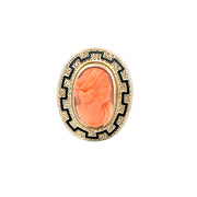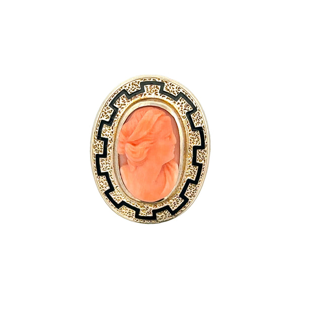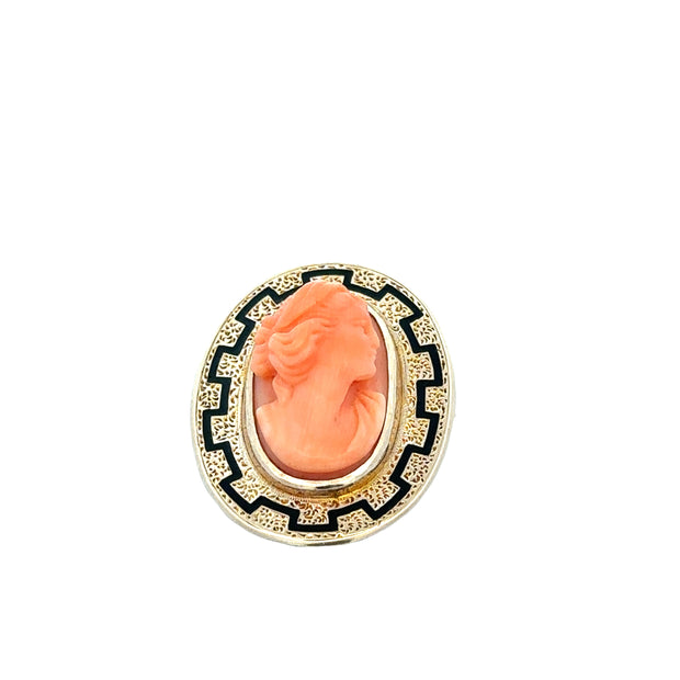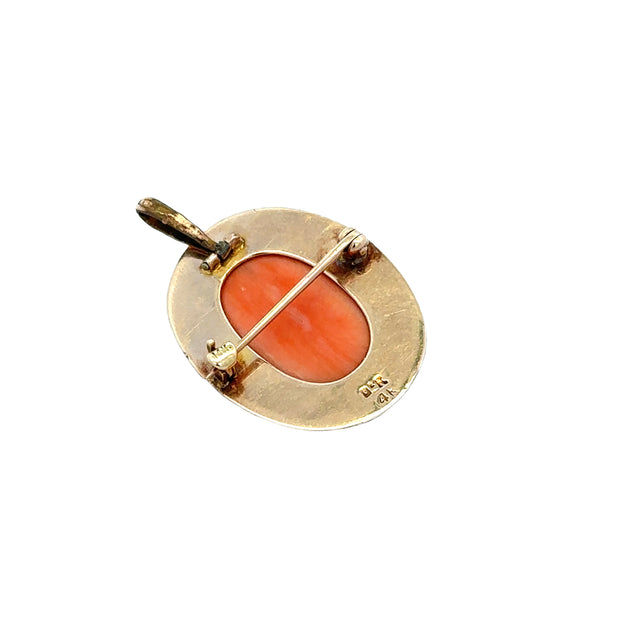 Vintage Enameled Coral Cameo Brooch / Pendant in Yellow Gold