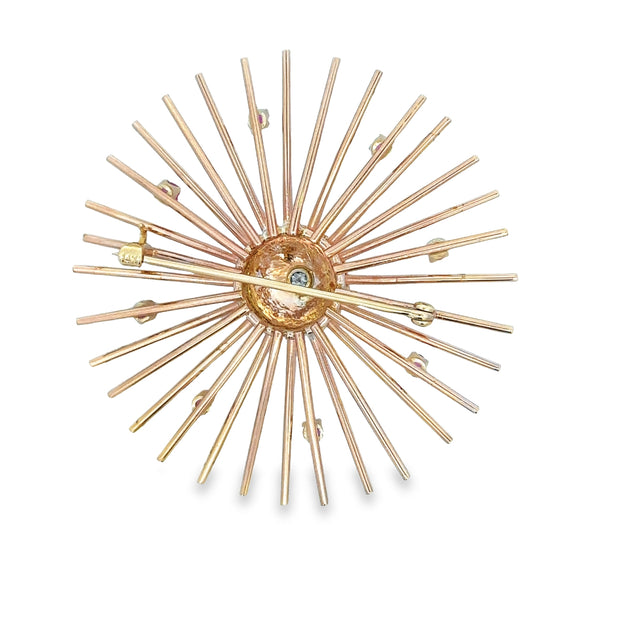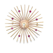 Vintage Retro 1940s Ruby and Diamond Sunburst Brooch in Rose Gold