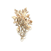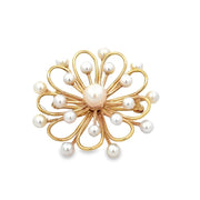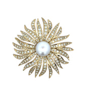 Statement Vintage Floral Button Pearl and Diamond Brooch in 18k Yellow Gold