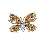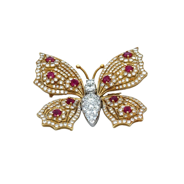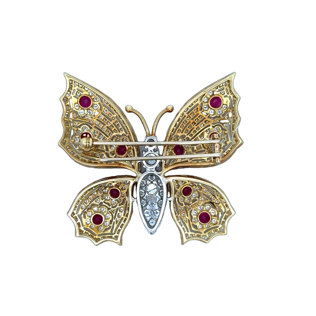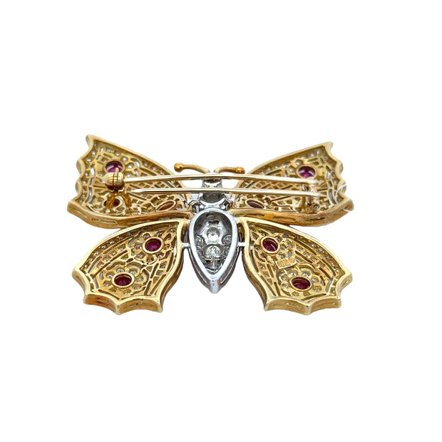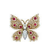 Ruby and Diamond Butterfly Brooch in 18k Yellow Gold and Platinum