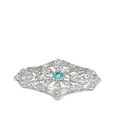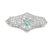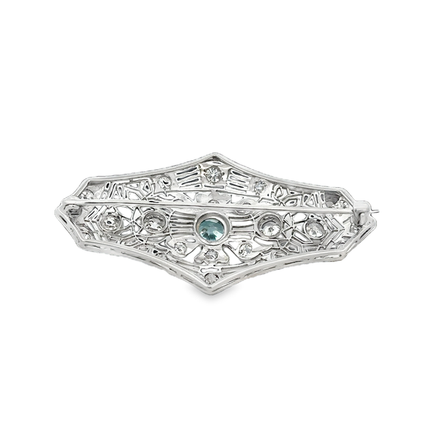 Vintage Art Deco Blue Zircon and Diamond Brooch in White Gold