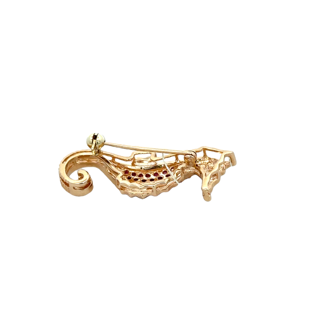 Vintage Ruby and Diamond Seahorse Brooch in Yellow Gold