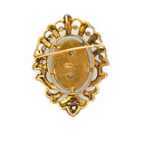 This exquisite vintage 14K yellow gold coral cameo is set in a beautifully detailed Taille d'épargne enameled frame, showcasing exceptional craftsmanship and timeless elegance. Designed for versatility, this piece can be worn as either a brooch or a pendant, making it a unique addition to any collection. Measuring 3/4" wide x 1" tall, this heirloom-quality piece embodies classic artistry. Appraised Value $800.00