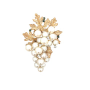 Vintage 1960s Akoya Cultured Pearl, Emerald and Diamond Brooch