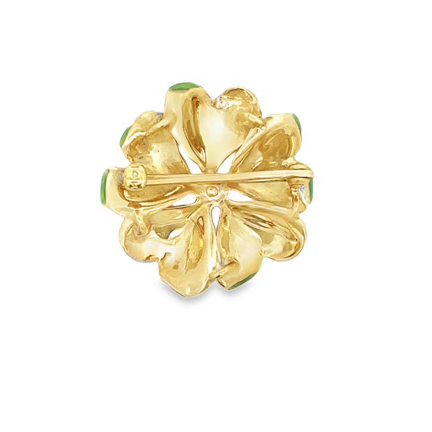 Antique Enamel Art Nouveau Flower Brooch in Yellow Gold