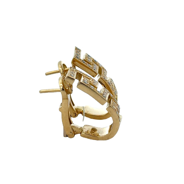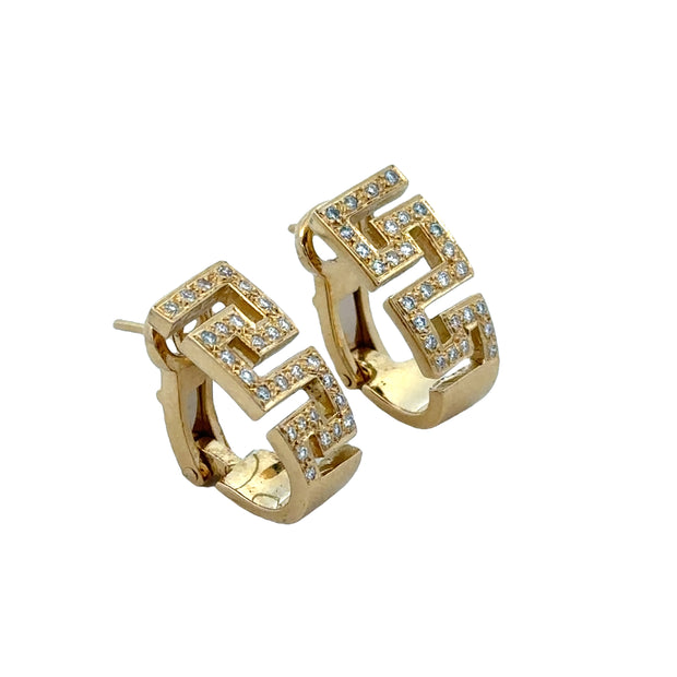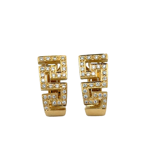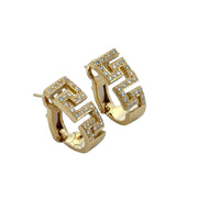 Greek Key Style Diamond Huggie Earrings in 18k Yellow Gold