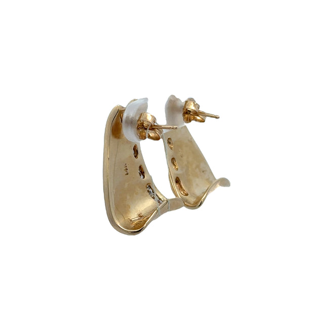 14k rose and white gold huggie style earrings accented with small diamonds, 0.05 ct. with GH color and VS2-I1 clarity. The earrings measure approx. 3/8" tall. Appraised Value $400.00