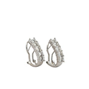 These exquisite 14K white gold huggie-style earrings showcase a sophisticated arrangement of bright white tapered baguette and marquise-cut diamonds, elegantly lining the edges for a radiant sparkle. With a total diamond weight of 1.42 carats, these stones feature GHI color and VS2-SI2 clarity, ensuring brilliance and elegance. Measuring 3/4" tall and rhodium plated for enhanced durability and shine, these timeless earrings are a perfect blend of luxury and refinement. Appraised Value $2,700.00
