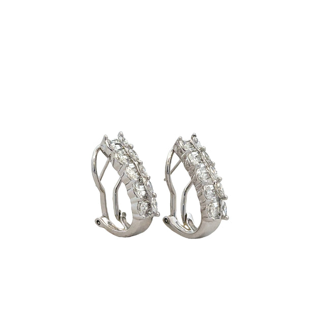 14k white gold hoop earrings accented with round brilliant cut diamonds, 2.0 ctw. with IJ color and SI2-I2 clarity. The hoops measure 1-3/8" tall. Rhodium plated. Appraised Value $5,200.00