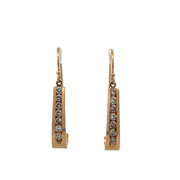 14k yellow gold "J" style diamond dangle earrings with fourteen round brilliant cut diamonds totaling 0.77 ct. with IK color and I1 clarity. The earrings measure 7/8" tall. Appraised Value $995.00