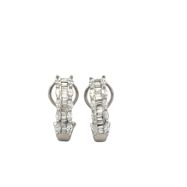 Tapered Baguette and Marquise Cut Diamond Huggie Earrings in White Gold