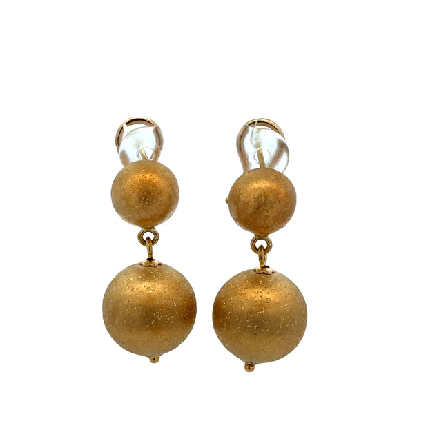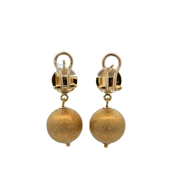 Sandblasted Gold Ball Dangle Earrings in 18k Yellow Gold