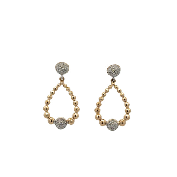Beaded Tear Drop Shape Diamond Earrings in Yellow Gold