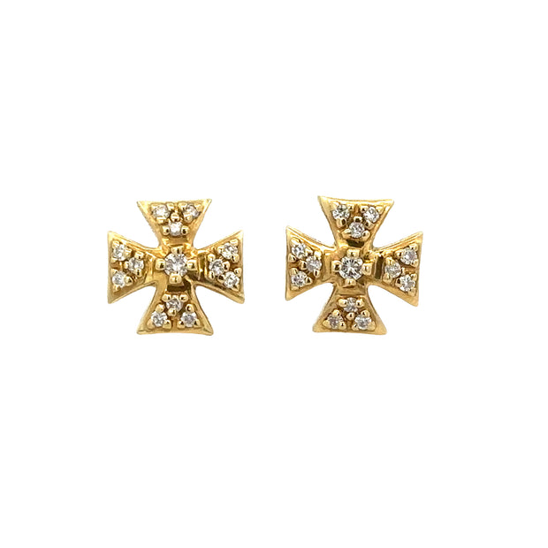 Diamond Accented Cross Stud Earrings in Yellow Gold
