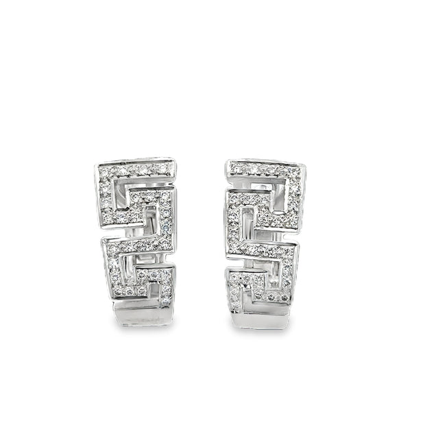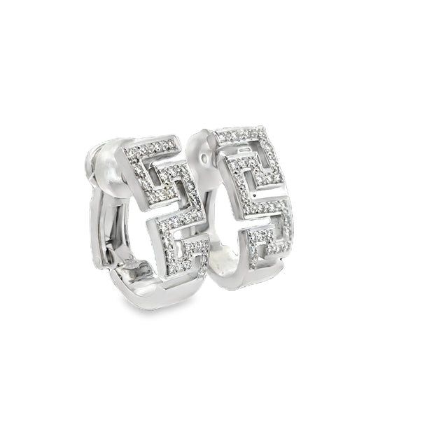 Diamond Accented Greek Key Earrings in 18k White Gold