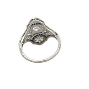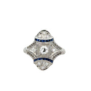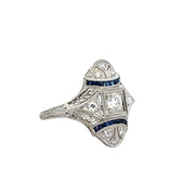 Antique Art Deco Diamond and Sapphire Cocktail Ring in Platinum