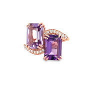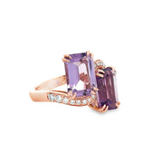 Amethyst and Diamond Bypass Style Ring in Rose Gold