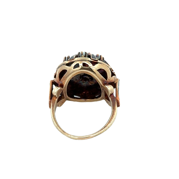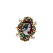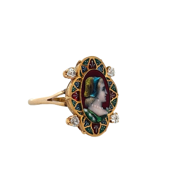 Antique Victorian Enameled Cameo Diamond Ring in Yellow Gold