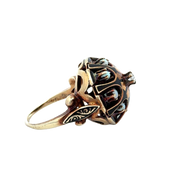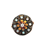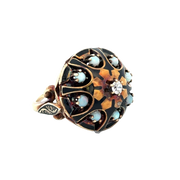 Antique Victorian Domed Opal and Diamond Ring with Black Enamel