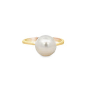 14k yellow gold ring showcasing a 9.3mm Akoya cultured pearl sitting prominently atop the finger. The ring is a size 6.75 and can be sized. Appraised Value $700.00