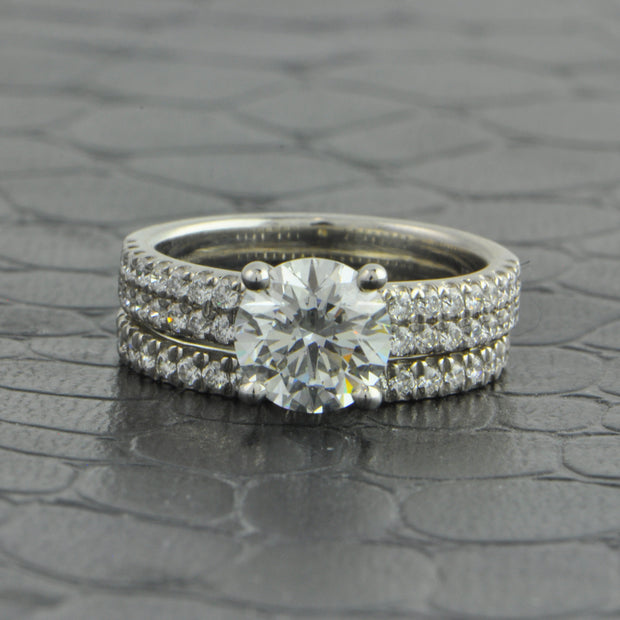 1.63 ct. Round Brilliant Cut Diamond Engagement Ring and Wedding Band in Platinum