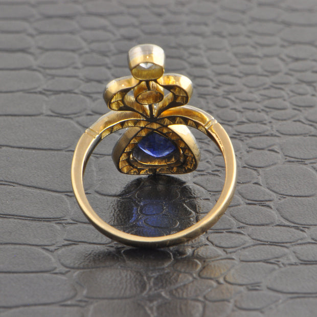 Antique Edwardian Sapphire and Diamond Ring in 18k Gold and Platinum