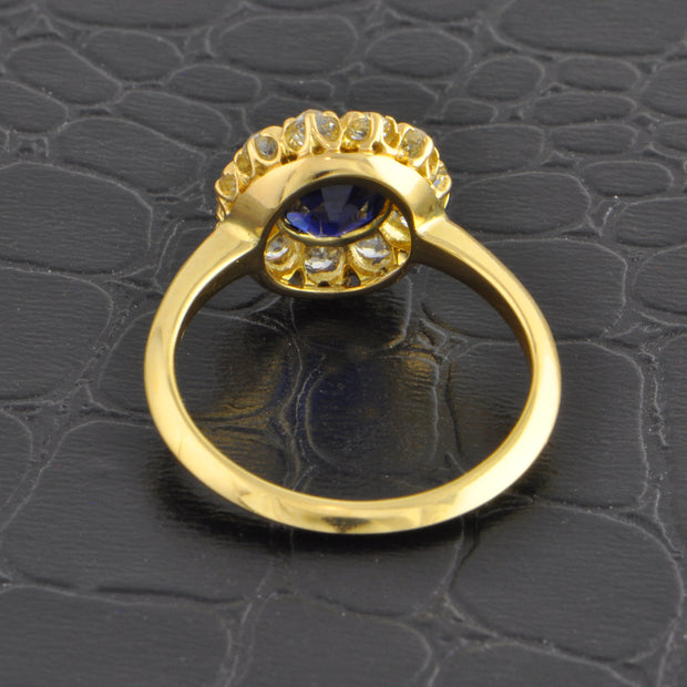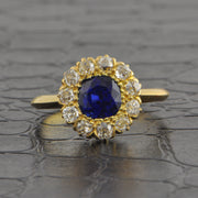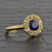Antique Edwardian Sapphire and Old Mine Cut Diamond Cluster Ring in 18k Yellow Gold