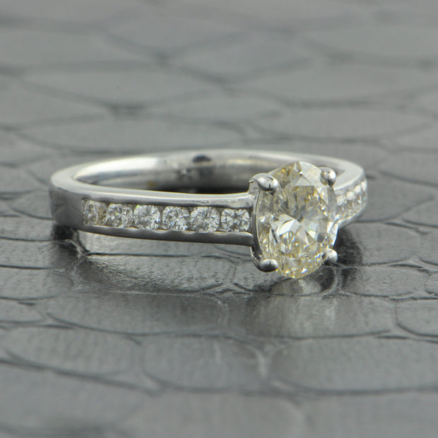 1.27 ct. Fancy Yellow Oval Cut Diamond Ring in Platinum and 18k Yellow Gold