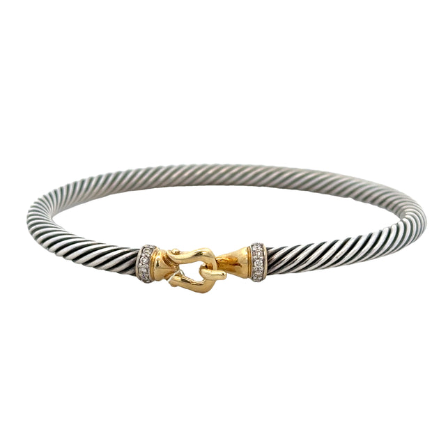 Pre-owned David Yurman Diamond Buckle Classic Cable Bracelet