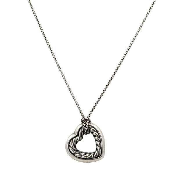 Pre-Owned David Yurman Sterling Silver Cable Heart Necklace