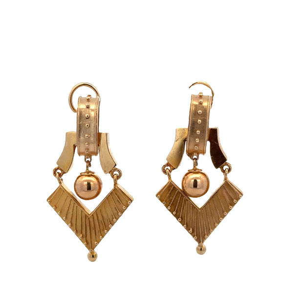 Vintage Victorian Revival Clip-on Earrings in Yellow Gold