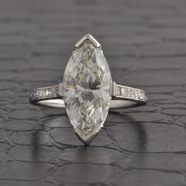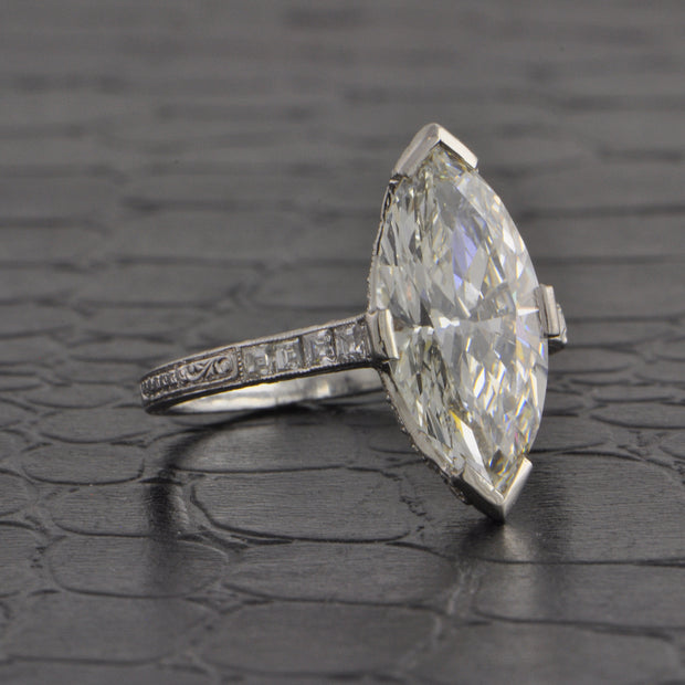 Antique Art Deco 4.09 ct. Marquise Cut Diamond Engagement Ring in Platinum